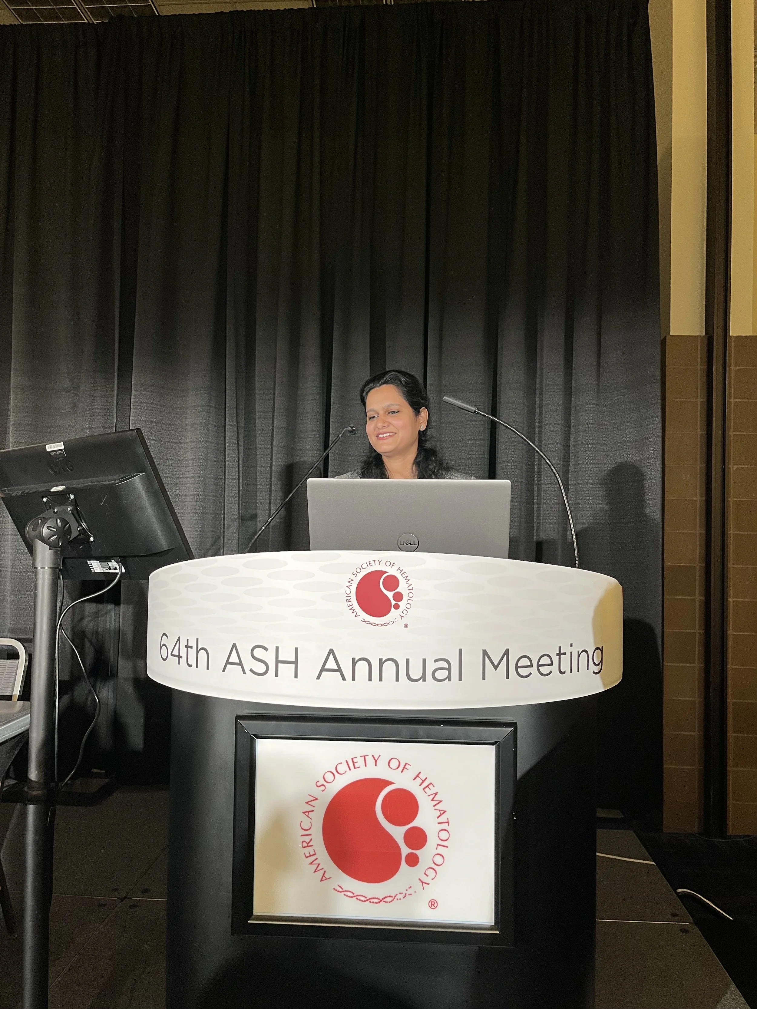 Sayantani presents at the poster session at the Cincinnati Myeloid Workshop.